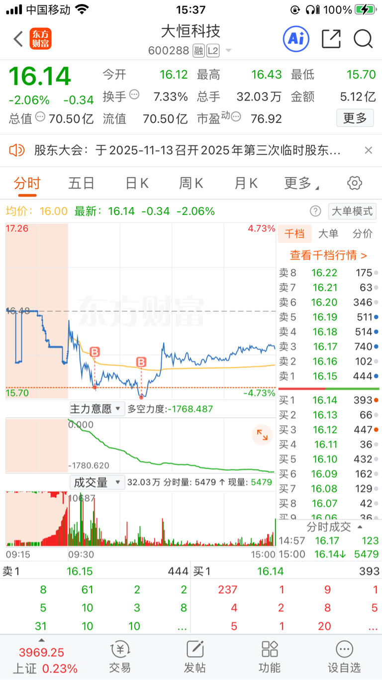 $大恒科技(SH600288)$ 朱莉,明天需要你这个苦命人抬轿子