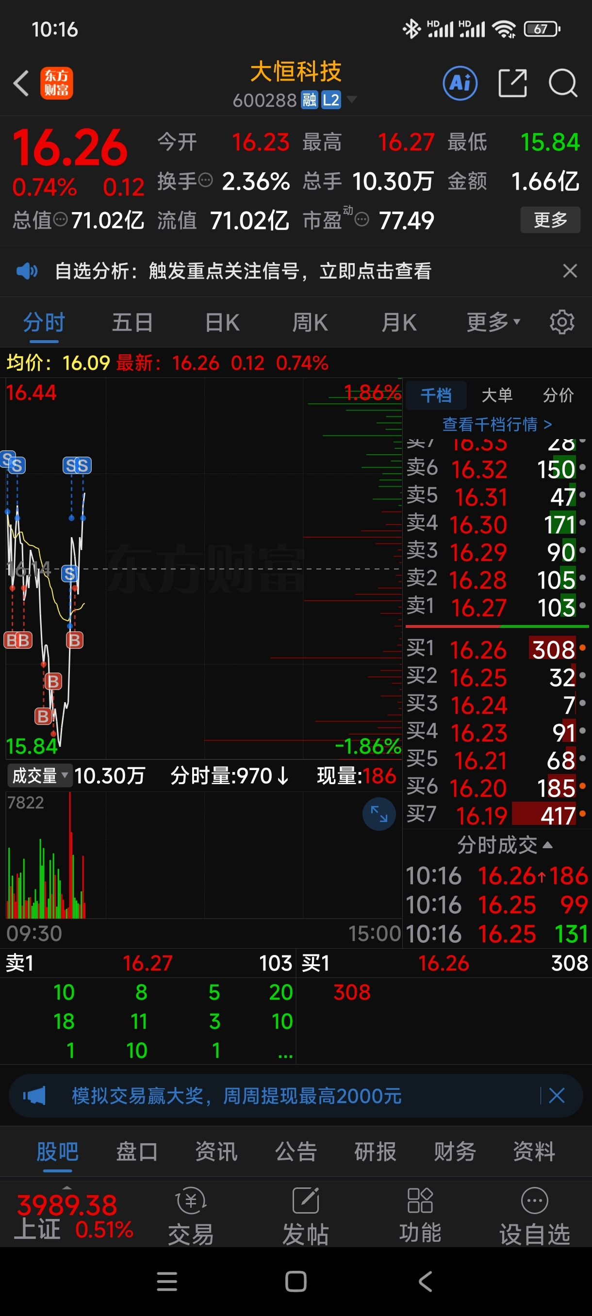 $大恒科技(SH600288)$ 感谢小庄送来新鲜的带血筹码。