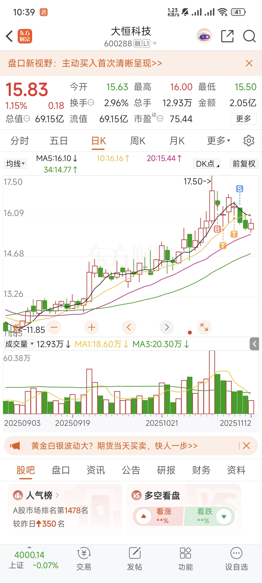 $大恒科技(SH600288)$ 小亏走人,留下发财