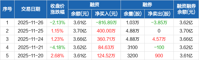 大恒科技:融资净偿还816.89万元,融资余额3.61亿元(11-26)