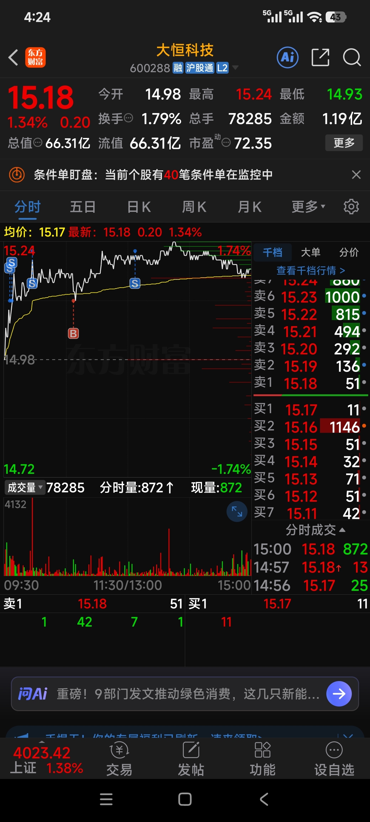 $大恒科技(SH600288)$ 2026年1518好彩头!