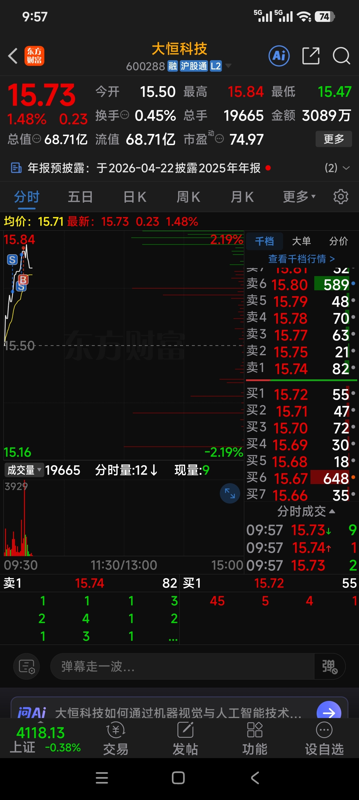 $大恒科技(SH600288)$ 又一个乌龙指!