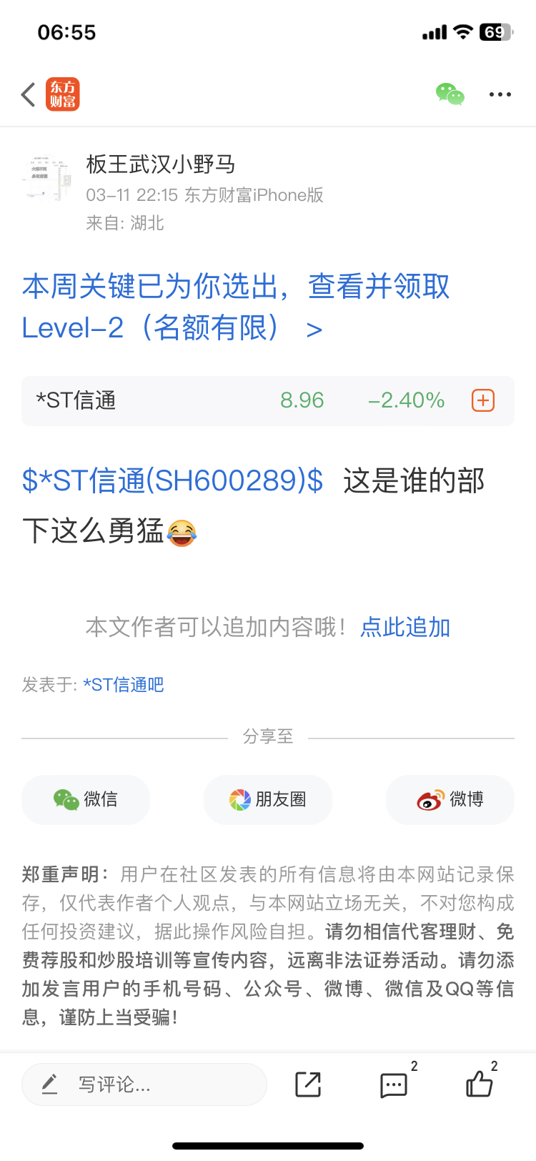 温馨提示: 1.根据《证券法》规定,禁止编造、传播虚假信息或者误导性信息,扰乱证券市场;2.用户在本社区发表的所有资料、言论等仅代表个人观点,与本网站立场无关,不对您构成任何投资建议。用户应基于自己的独立判断,自行决定证券投资并承担相应风险。《东方财富社区管理规定》