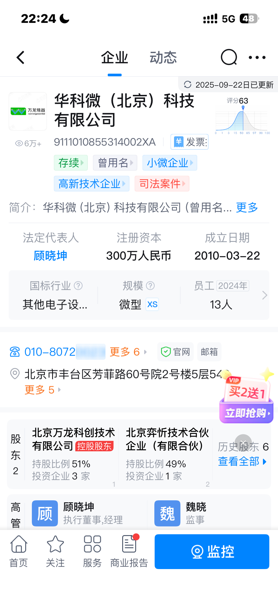 两个华科微,都在北京,都在同一个地点,又是顾晓坤同时在这两家公司任职!华科微北京