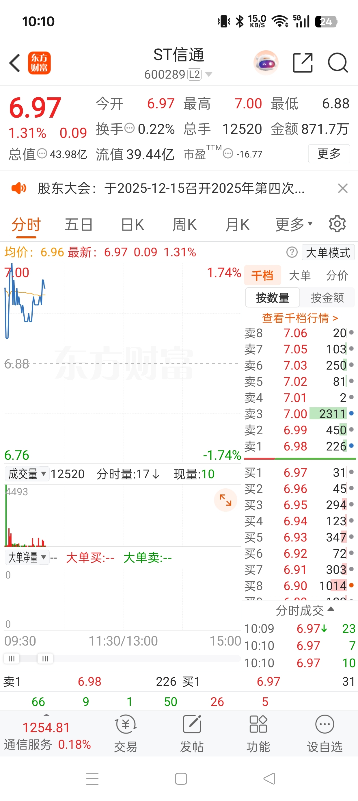 如果7.00这个挂单被吃掉,大家不要买入,典型的诱多,分发筹码。