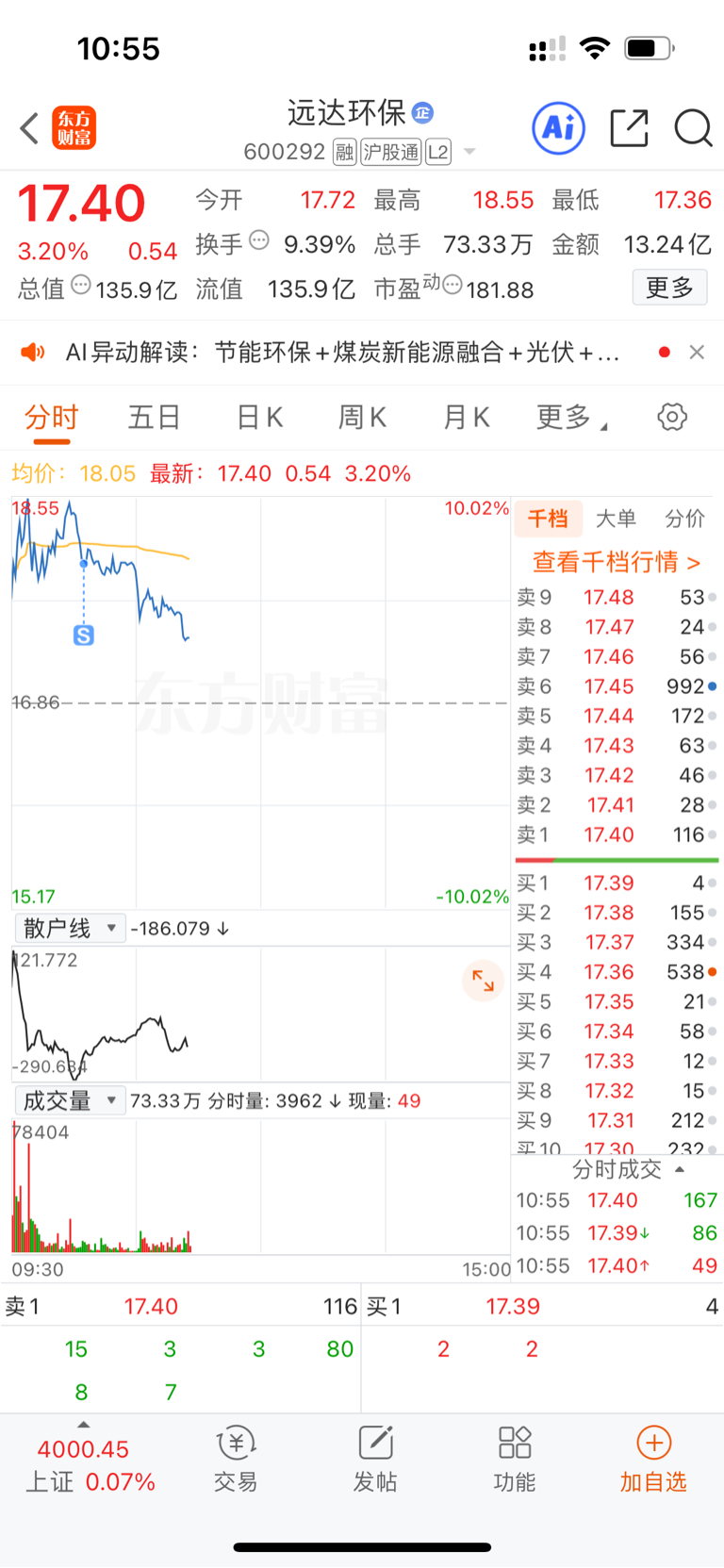 $远达环保(SH600292)$ 去年买的,终于回本了