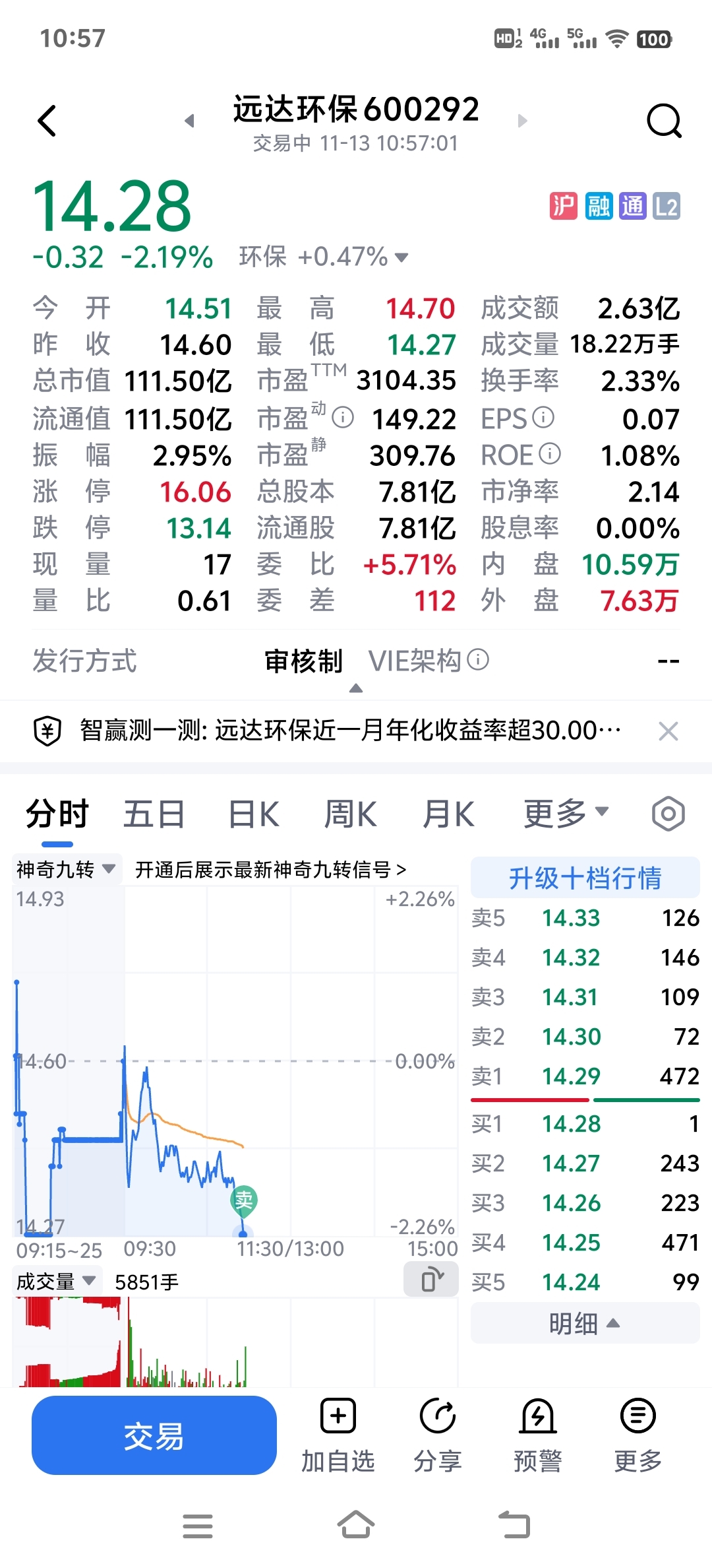 $远达环保(SH600292)$ 走了,杀猪。