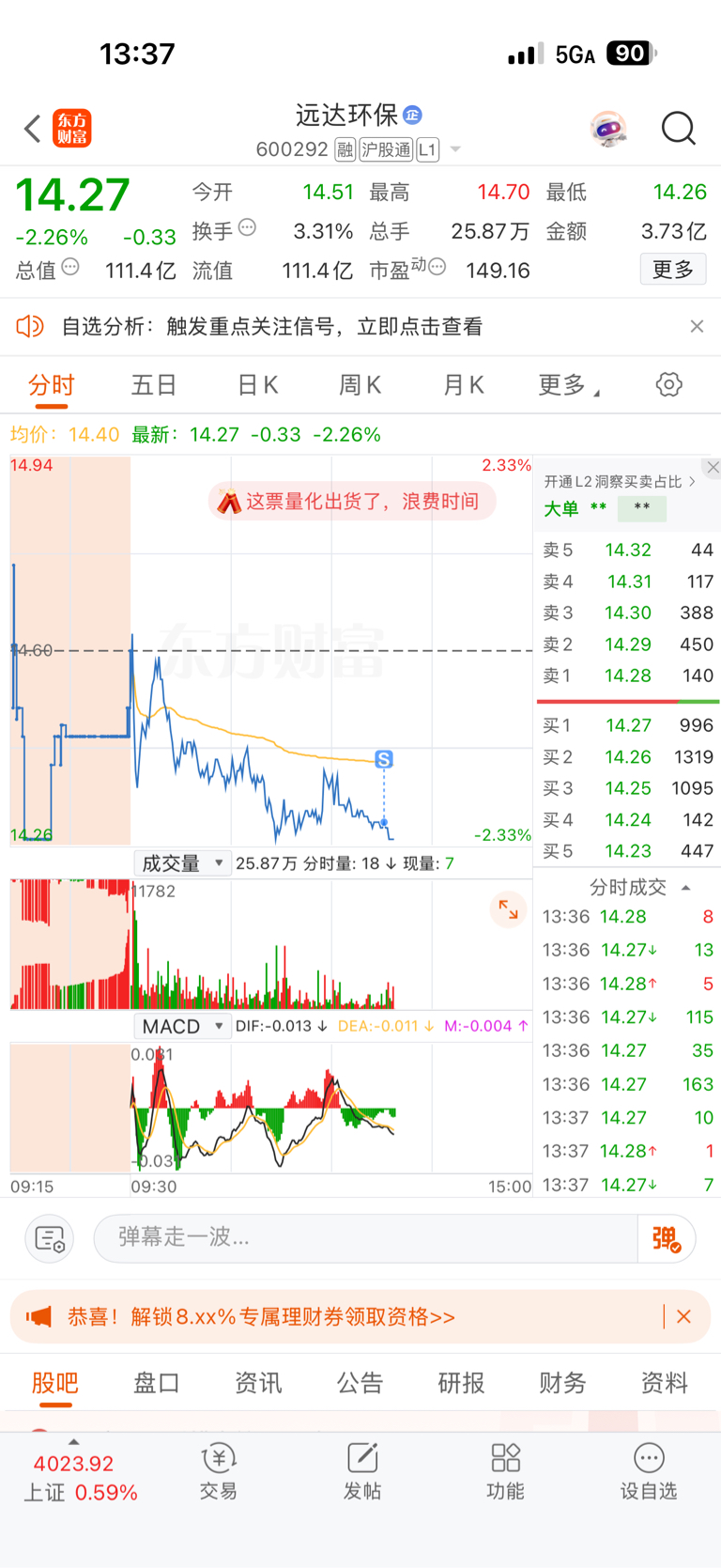 $远达环保(SH600292)$ 全部割掉了拿了大半年三十多个点不走只剩4个点的时候走了涨一点就来A杀怎么扛?