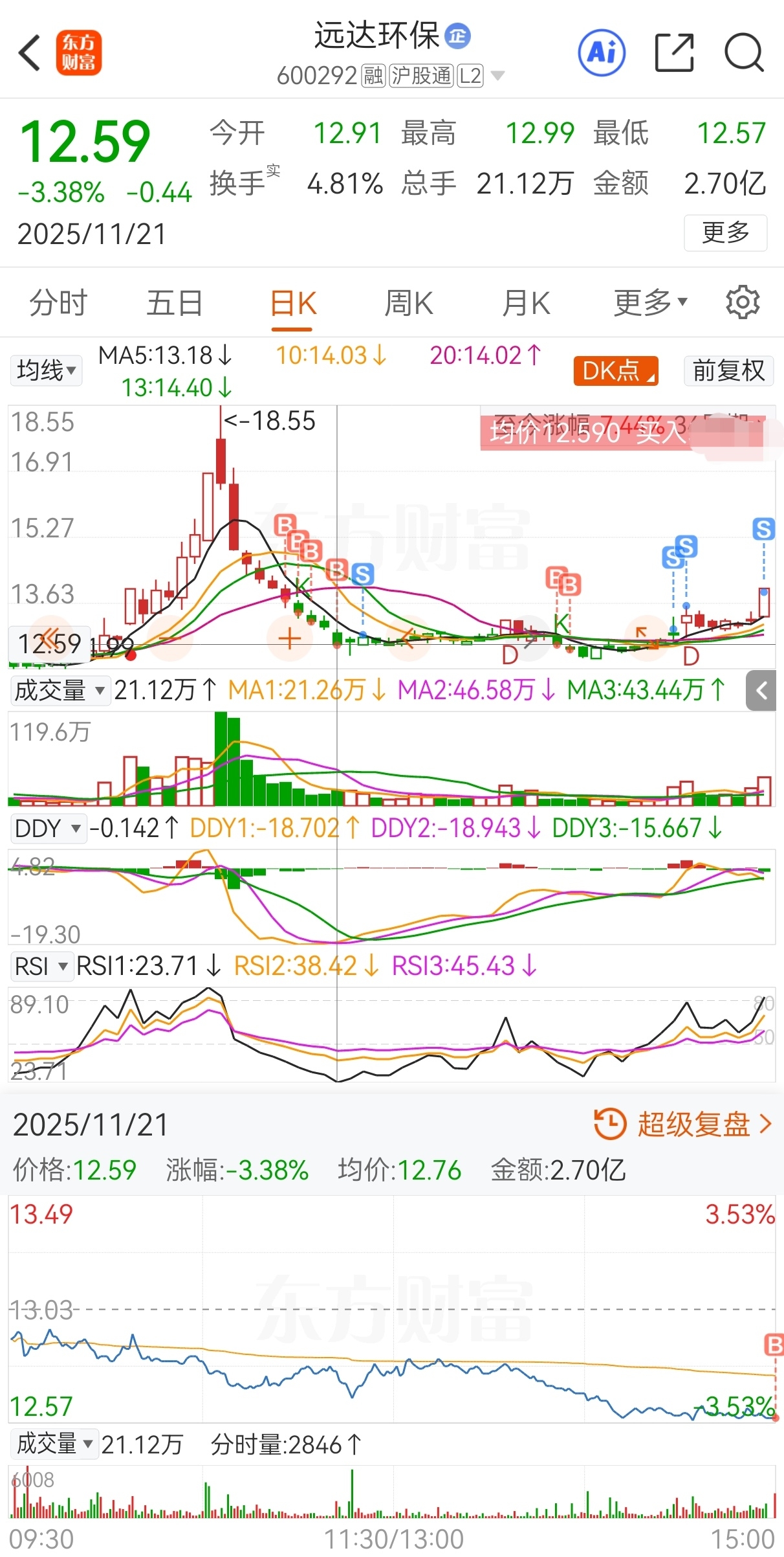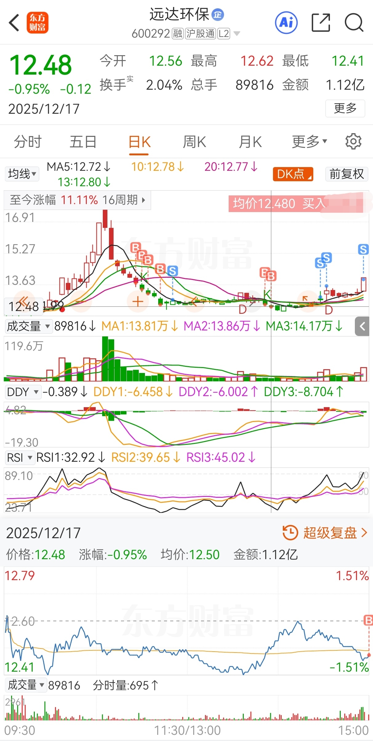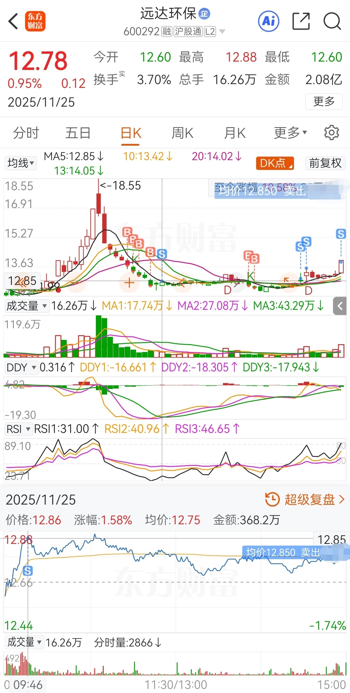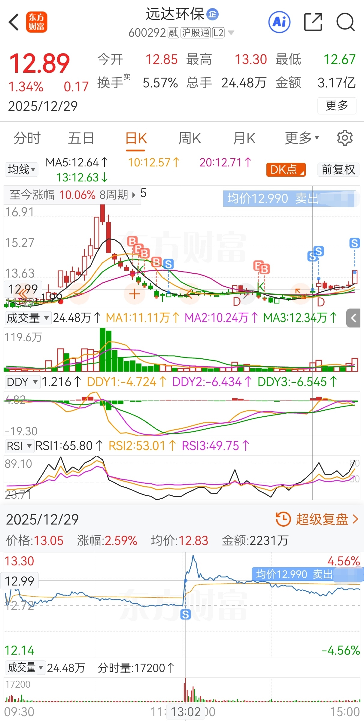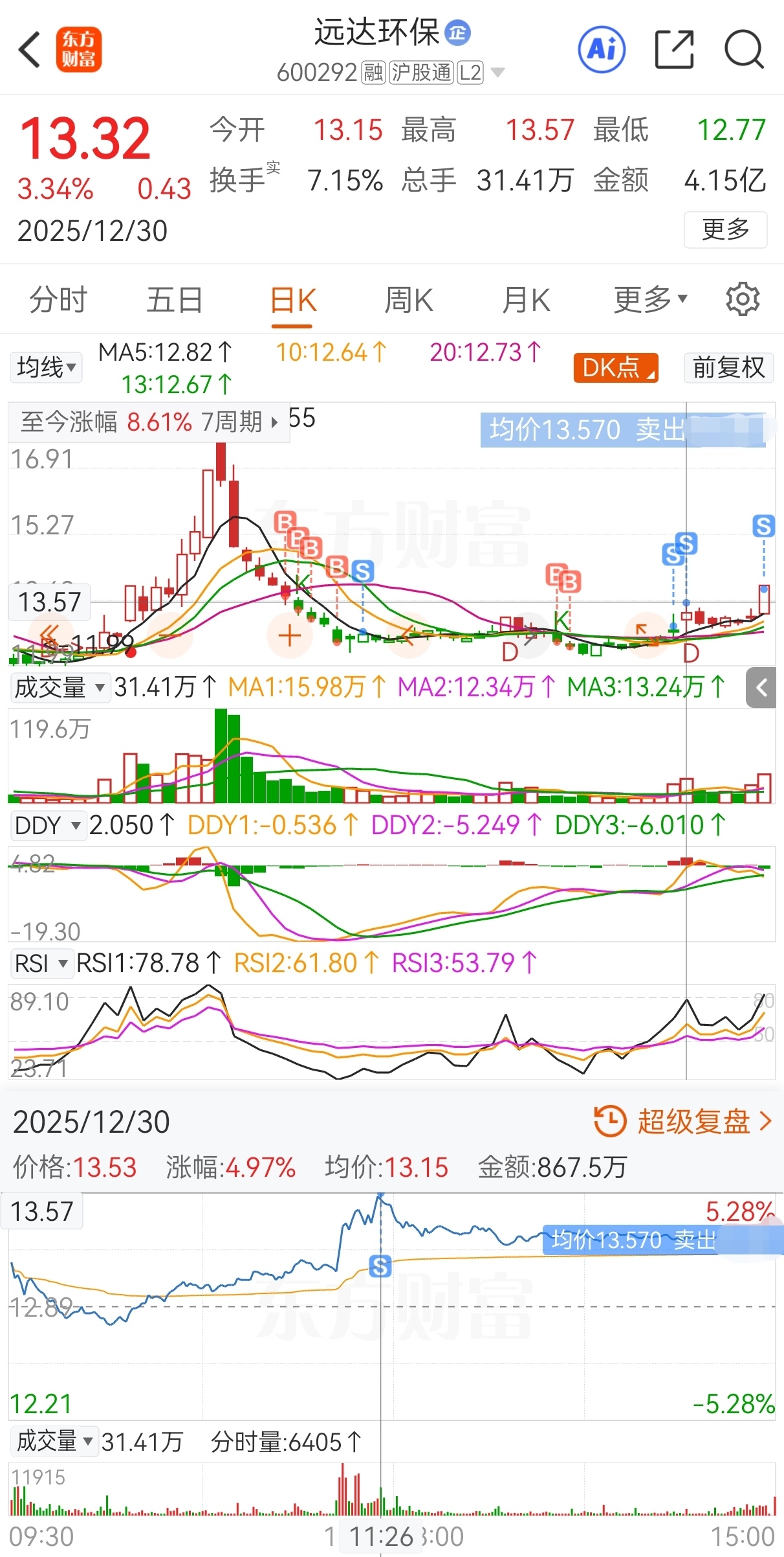 $远达环保(SH600292)$ 原计划今买明卖,实际13.73买,13.4加仓,13.17再加仓,12.59继续加仓,12.85减仓,12.6又加仓,12.48还加仓,12.99再减仓,13.57继续减仓,13.75又减仓,13.99卖,实盘短线套利远达环保,成功收米走人!
