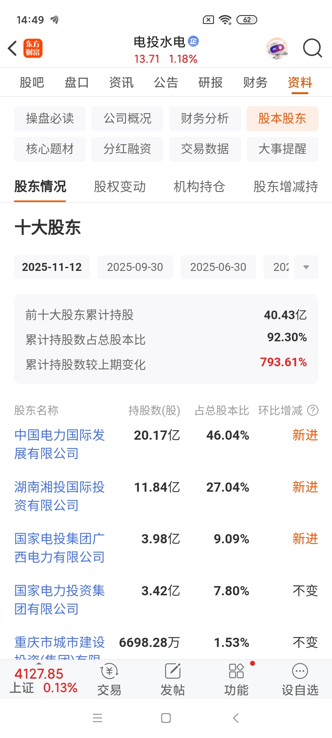 为啥公布11月12号的股东情况???