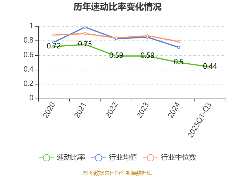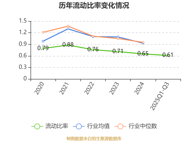 2025年前三季度,公司流动比率为0.61,速动比率为0.44。