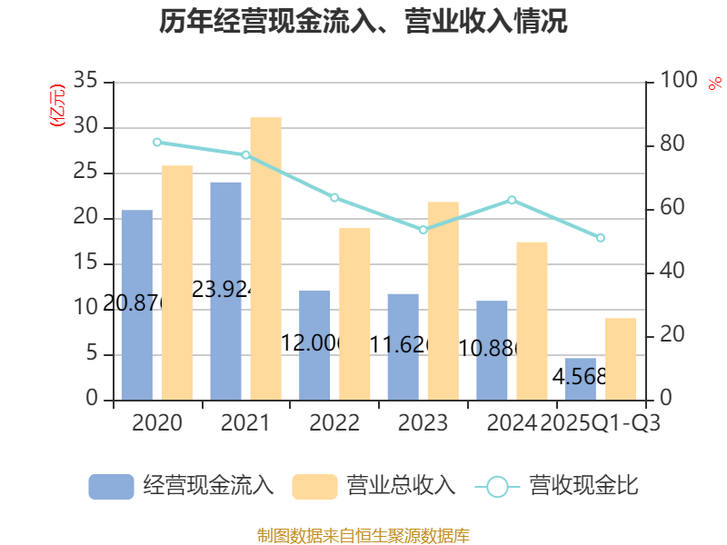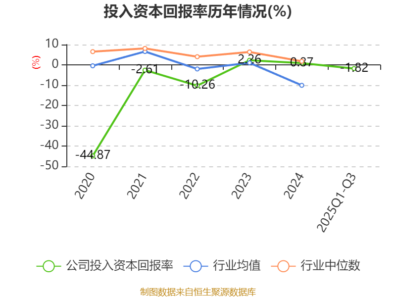 盈利能力方面, 2025年前三季度公司加权平均净资产收益率为-3.49%,同比下降3.57个百分点。公司2025年前三季度投入资本回报率为-1.82%,较上年同期下降2.85个百分点。