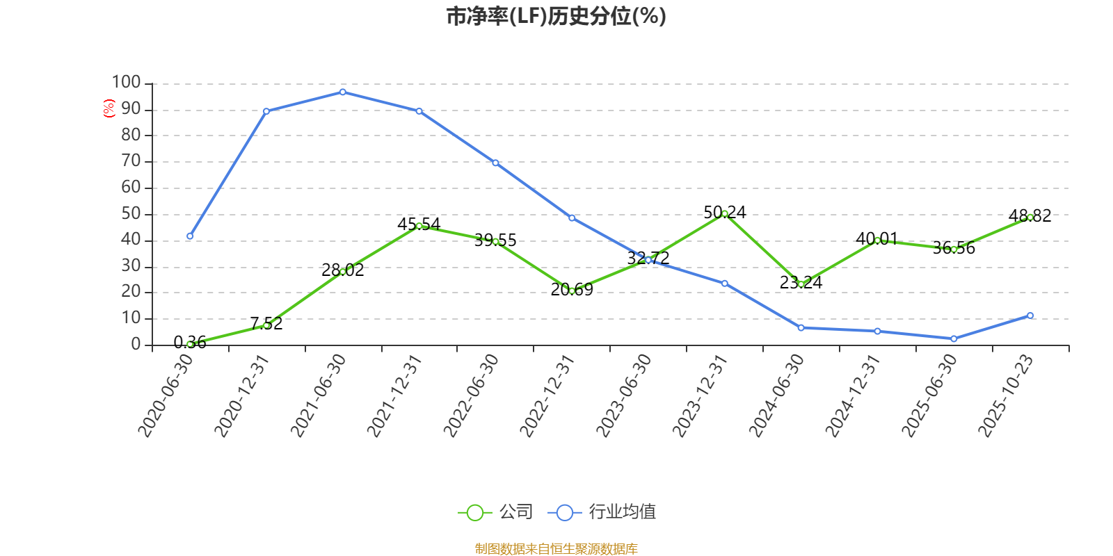 市盈率、市净率为负时,不显示当期分位数,会导致折线图中断。