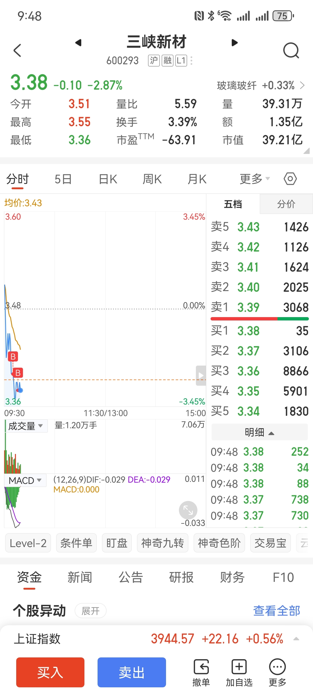 $三峡新材(SH600293)$ 338进来接盘了,主力给口汤喝!