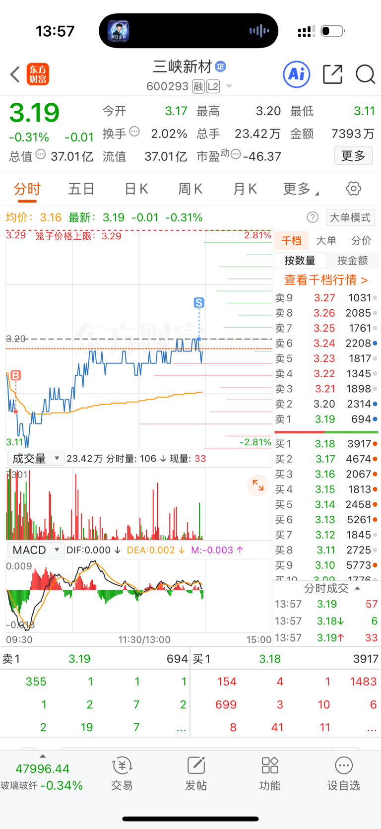 $三峡新材(SH600293)$ 3.2卖了一大半,这主力太差了,还是保险些好