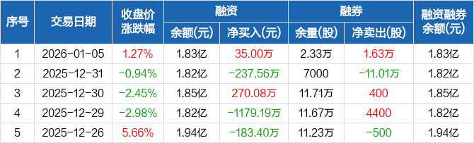 三峡新材:融资净买入35万元,融资余额1.83亿元(01-05)