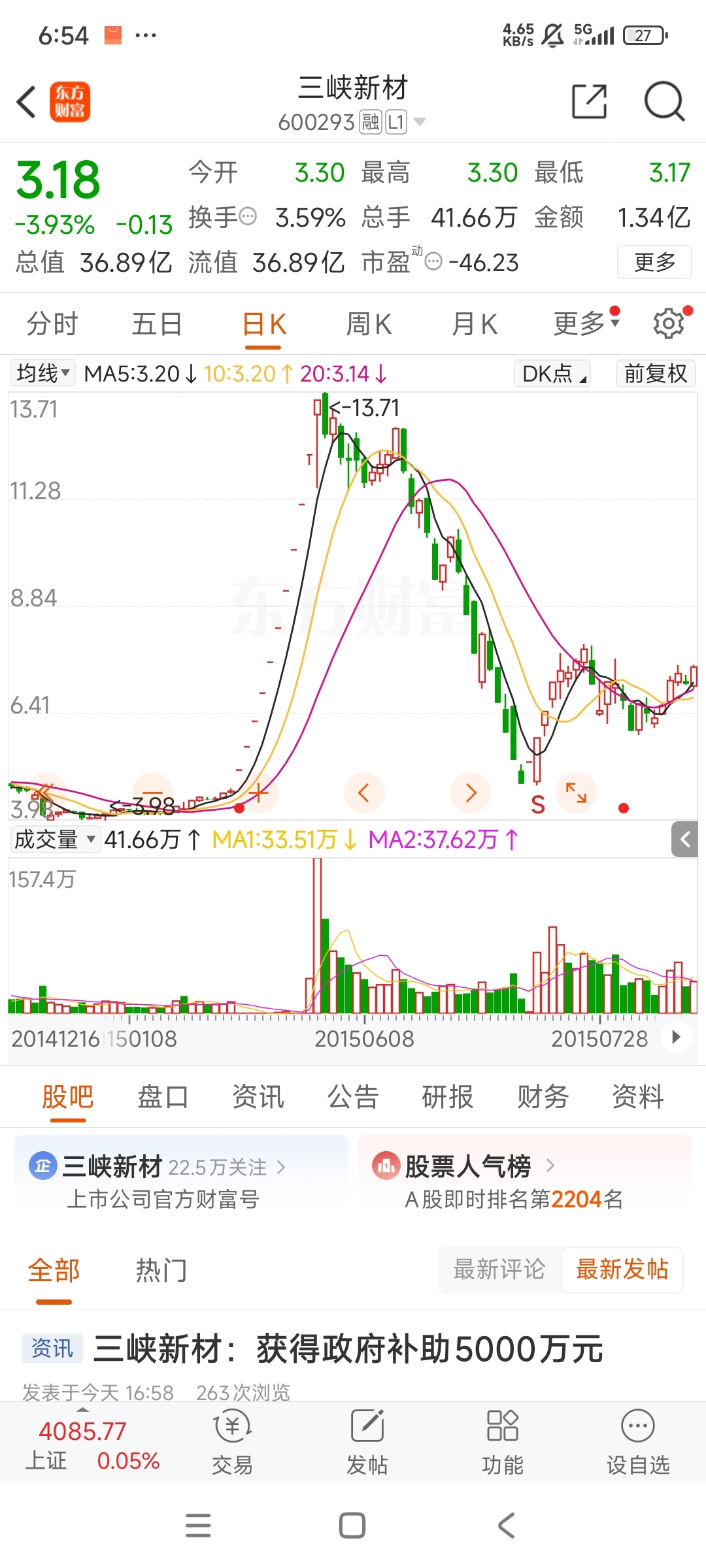 $三峡新材(SH600293)$ 利好,股性