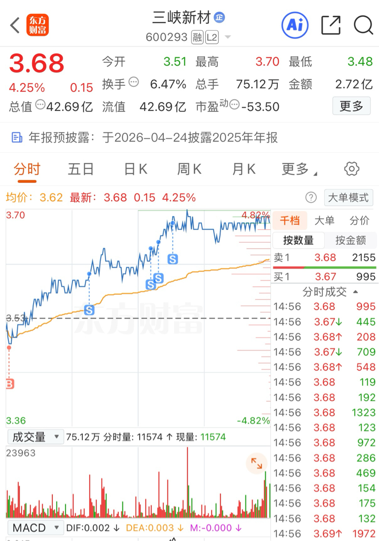 $三峡新材(SH600293)$ 这股不做t不行,明天低开再买