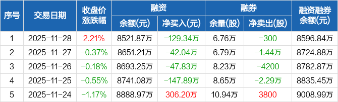 鄂尔多斯:融资余额8521.87万元,创近一年新低(11-28)