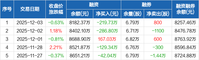 鄂尔多斯:融资余额8182.37万元,创近一年新低(12-03)
