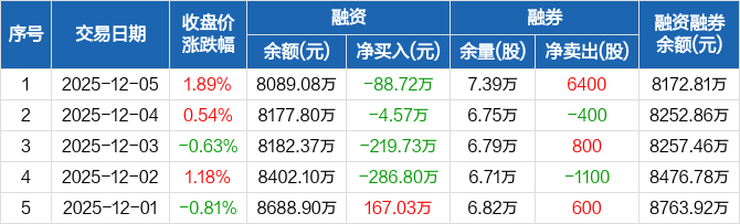 鄂尔多斯:融资余额8089.08万元,创近一年新低(12-05)