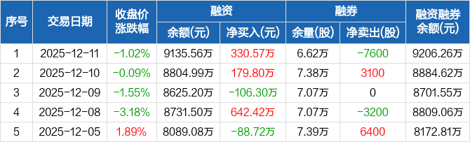 鄂尔多斯:融资净买入330.57万元,融资余额9135.56万元(12-11)