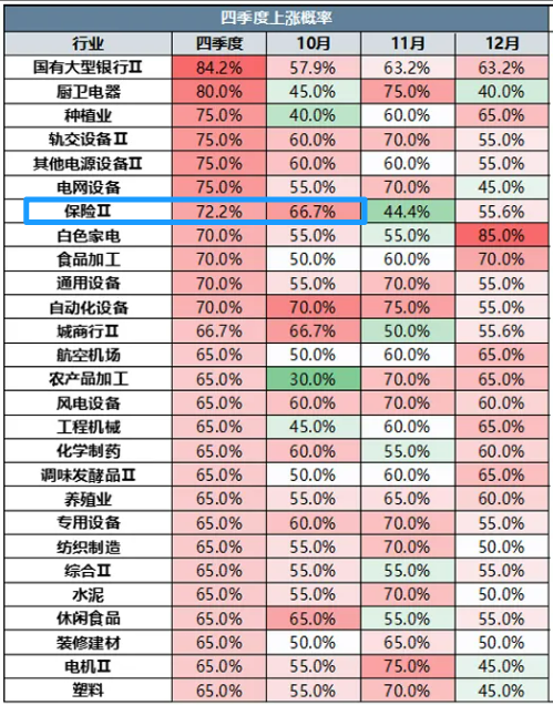 另外,保险板块四季度上涨概率高达72%,而今年保险板块三季报会很好。从新华保险公布的三季报看(三季度净利润同比+58.2%~101.3%超预期),保险板块三季度业绩很大可能会超预期!