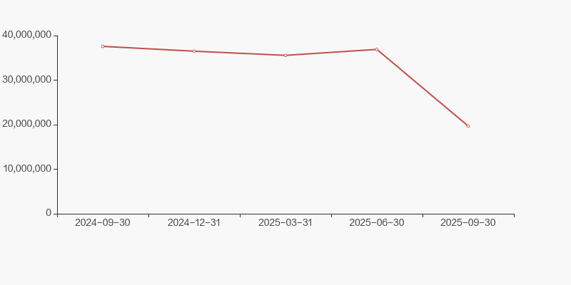 截至2025年9月30日,公司最新总股本为8.68亿股,其中流通股本为8.57亿股。户均持有流通股数量由上期的1.34万股上升至1.42万股,户均流通市值56.01万元。