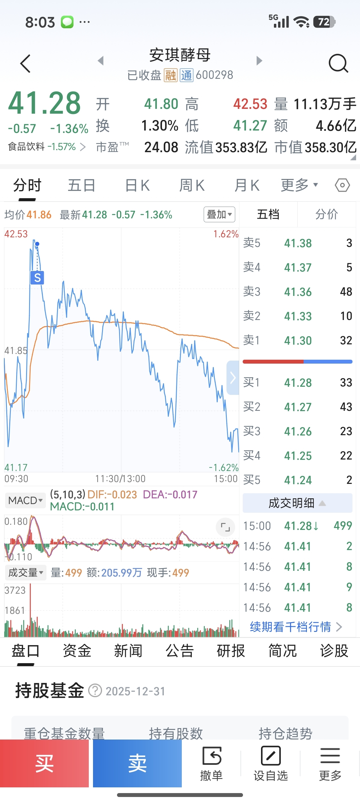 $安琪酵母(SH600298)$ 好吧我承认是我卖崩的