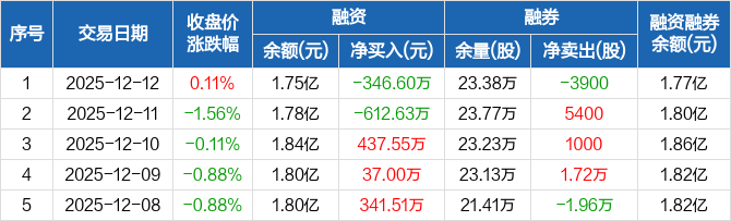 安迪苏:融资净偿还346.6万元,融资余额1.75亿元(12-12)