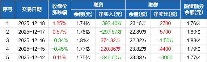 安迪苏:融资净偿还392.46万元,融资余额1.74亿元(12-18)