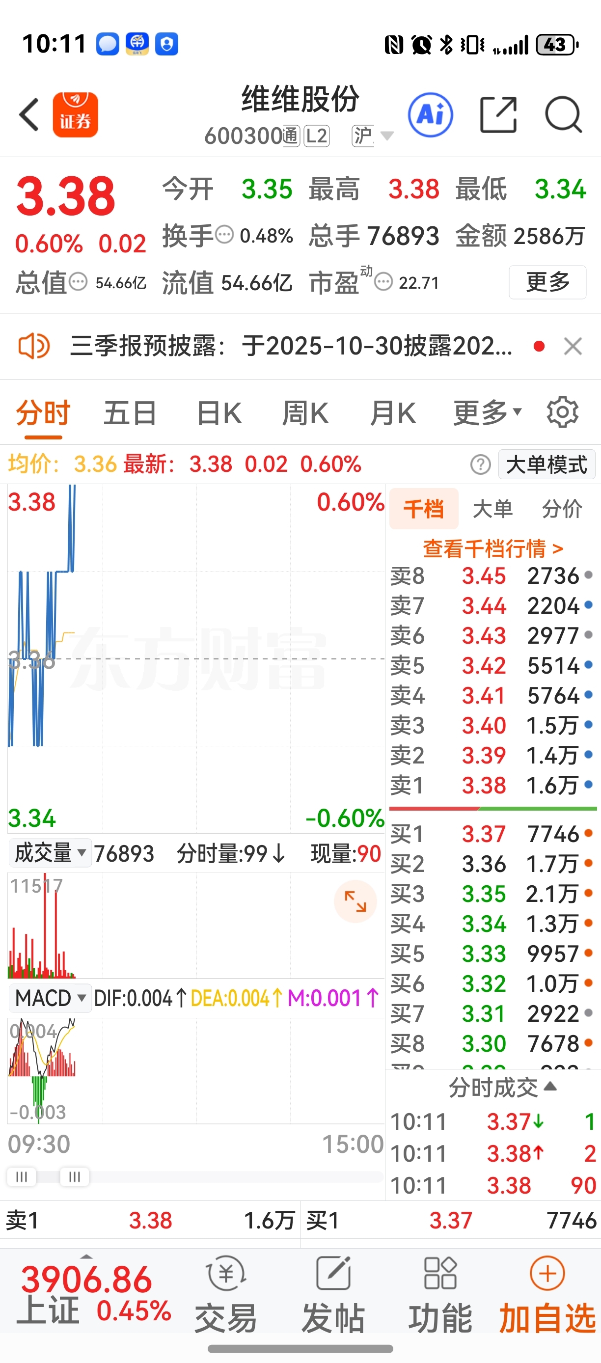 $维维股份(SH600300)$ 莫贪心340以上就T出去昨天接的,这玩意儿暂时只能这么玩,因为买它就是除稳无风险,无风险也不可能有大收益!