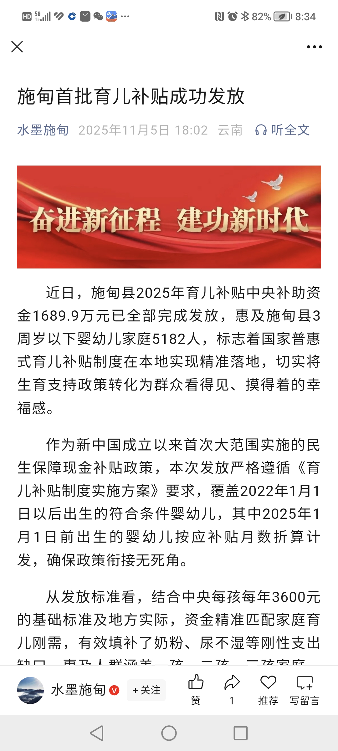 全国首批育儿补贴已到账,云南施甸应该是第一家,星星之火开始燎原。明天如果开始炒乳