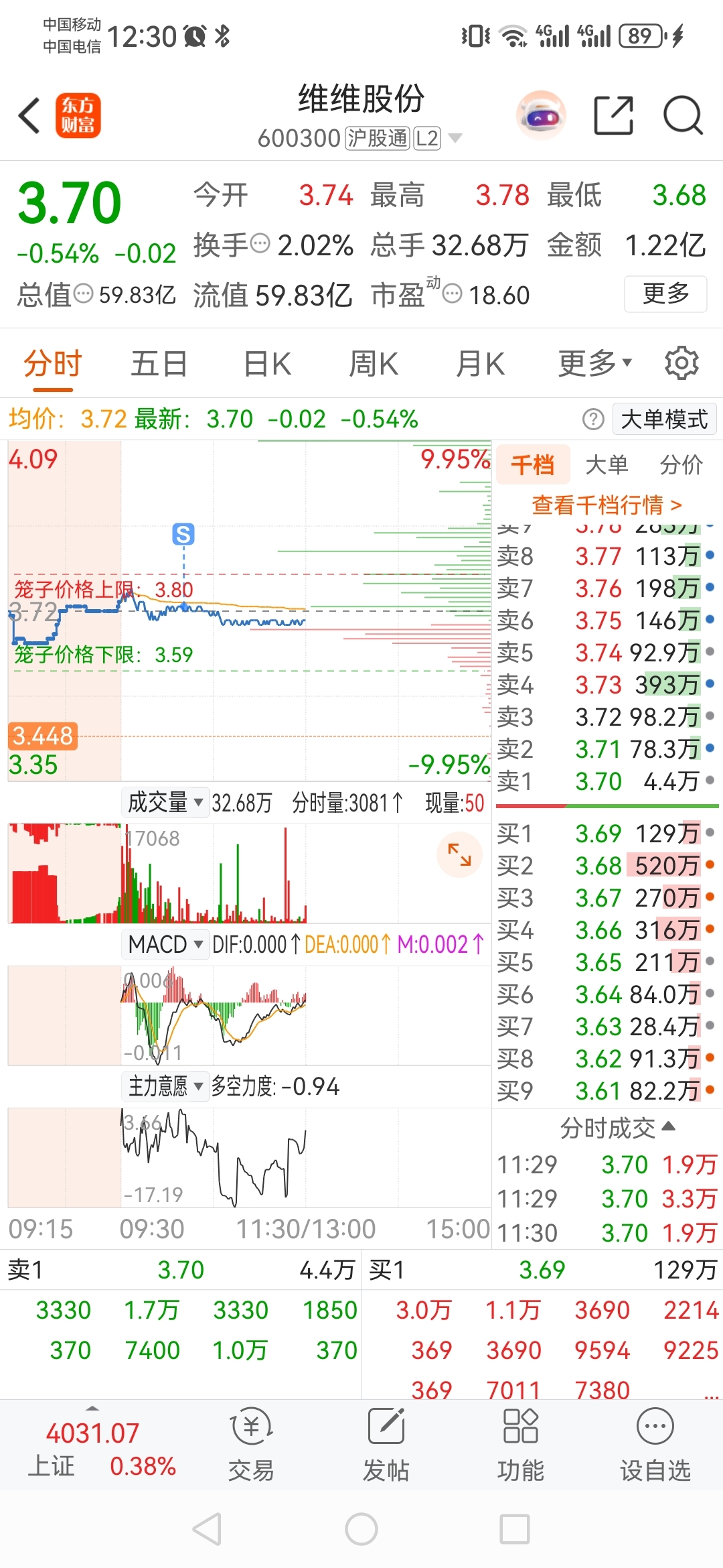 3.45的成本怎么弄,你到底跌不跌下来。留几千股的底仓陪主力玩