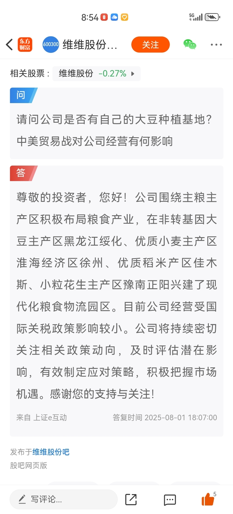 $维维股份(SH600300)$