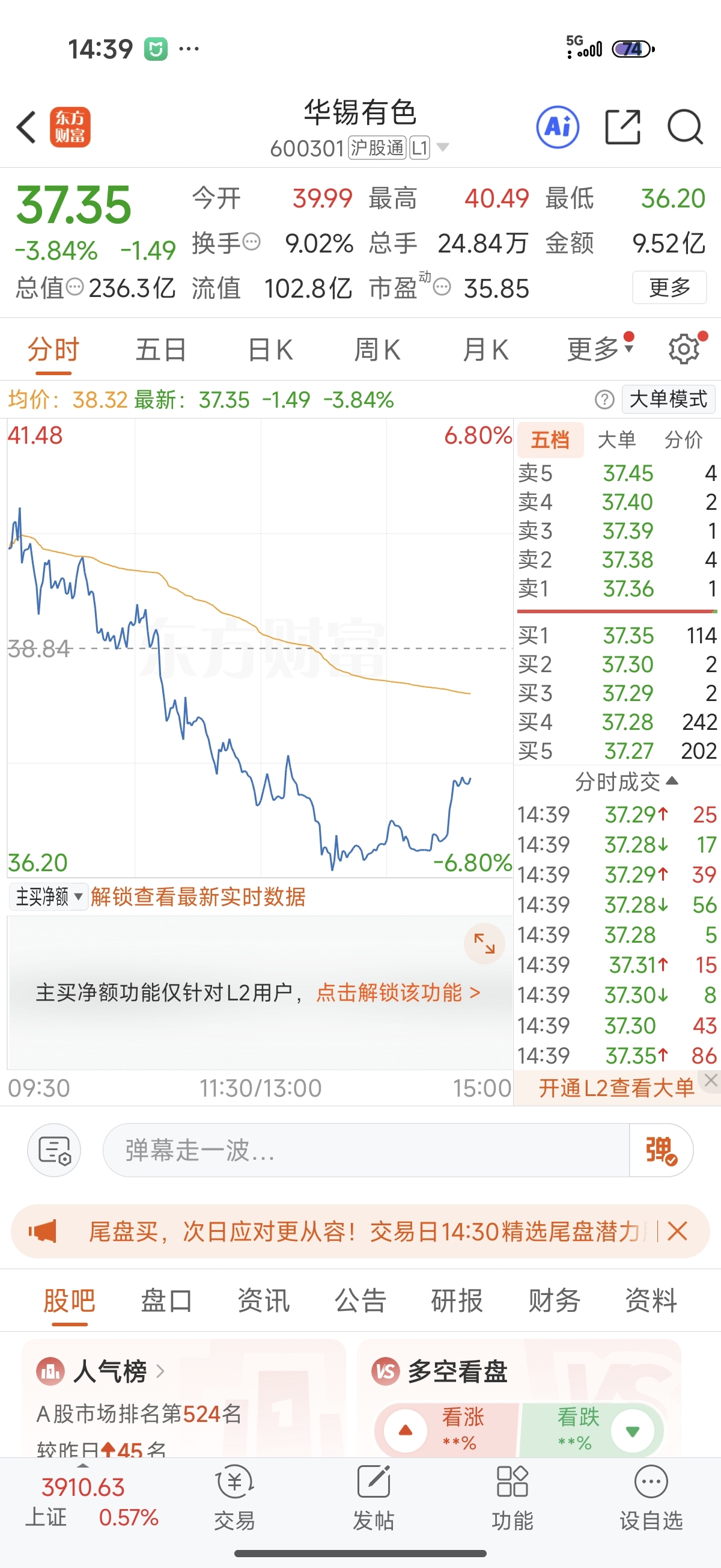$华锡有色(SH600301)$ 希望收盘了能拉红,明天开始涨停潮