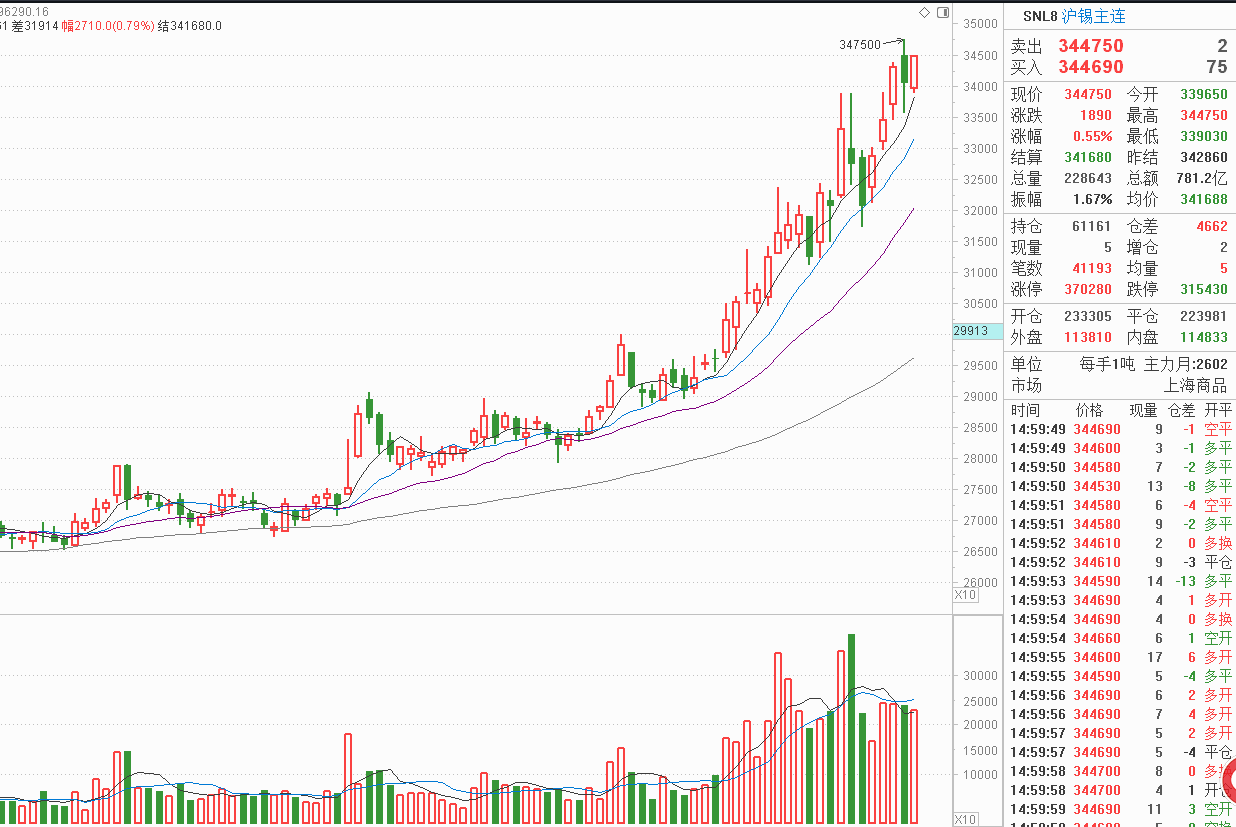 伦锡沪锡几乎都是今日最高价收盘