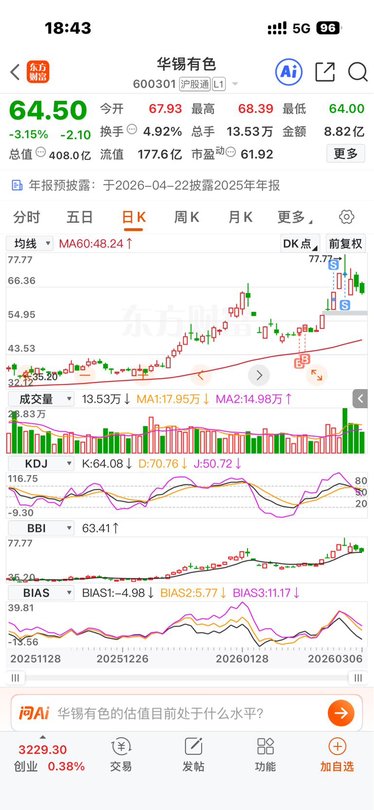 $华锡有色(SH600301)$ 不是尖尖 但很满足