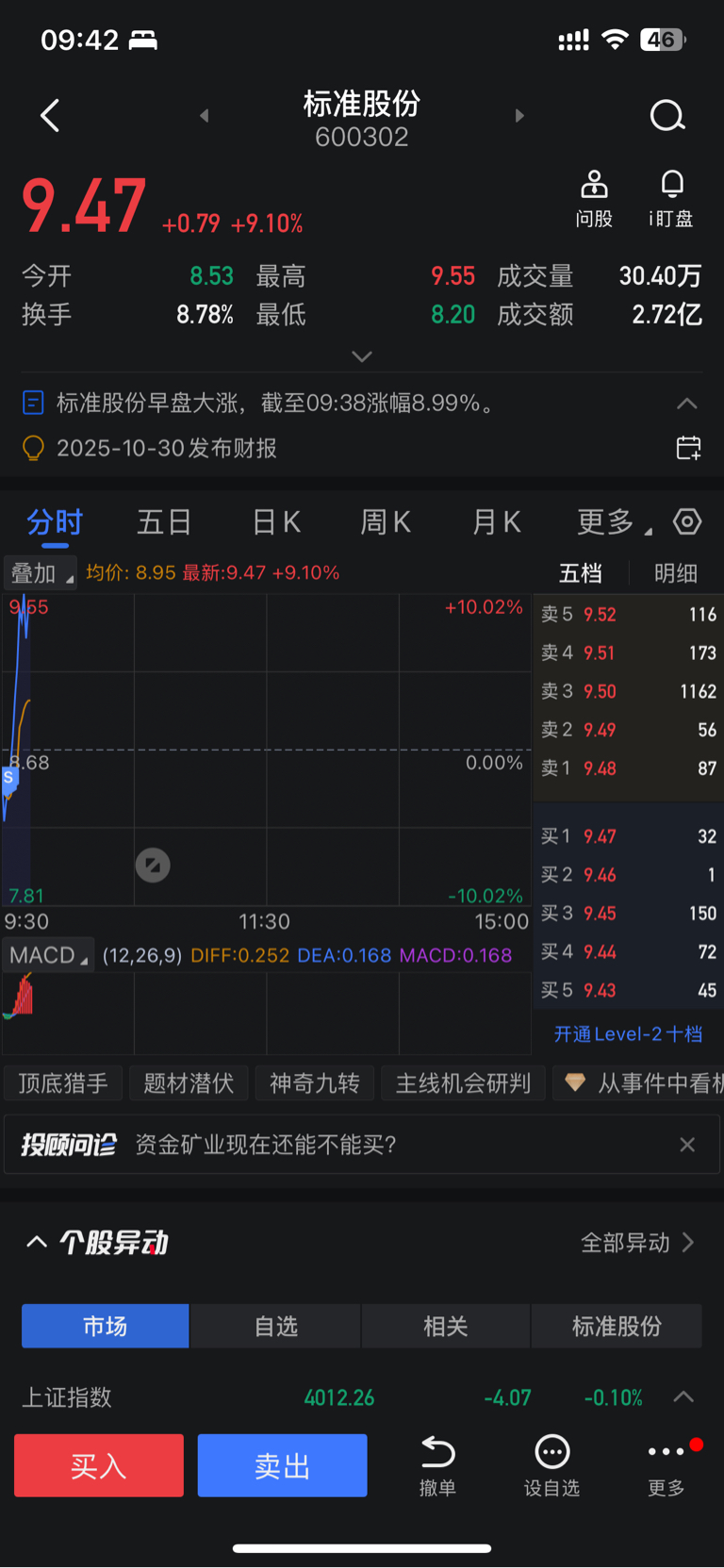 $标准股份(SH600302)$ 卧槽,买就卖,卖就是买以后老子懂了
