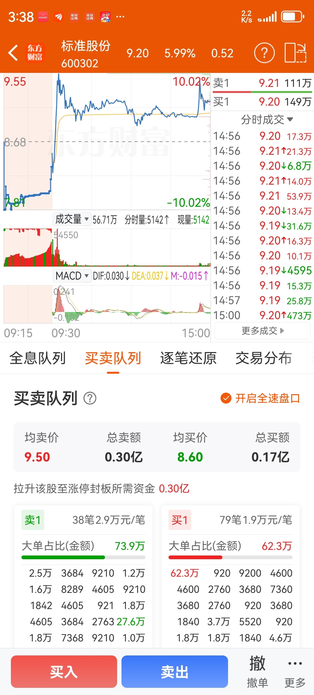 $标准股份(SH600302)$ 主力3000万都没有了吗?