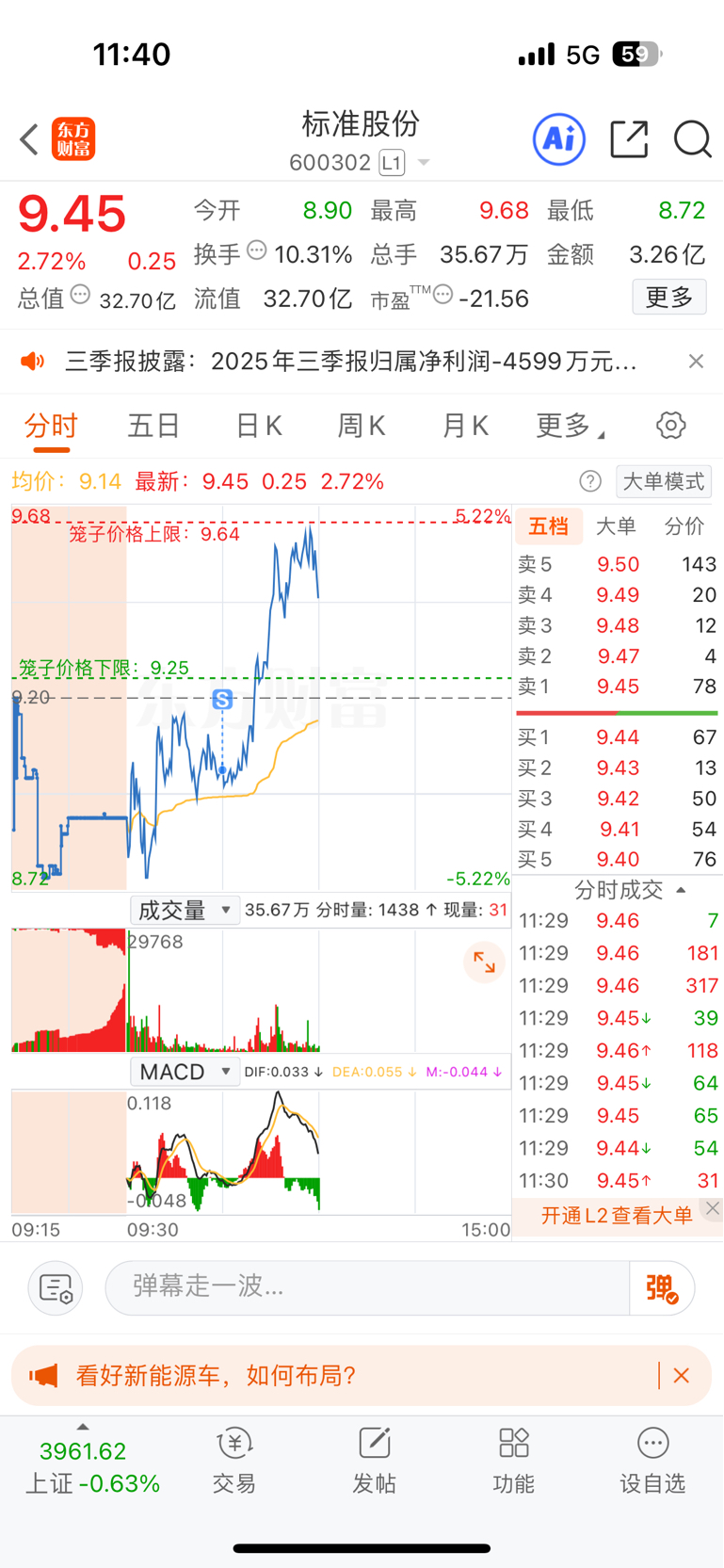 $标准股份(SH600302)$ 想t一下 结果飞了