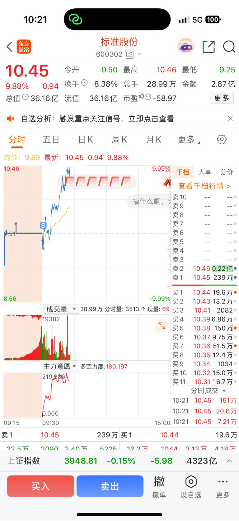 $标准股份(SH600302)$ 今天操作有问题,为了干20厘米的票,把它卖了,好像卖了也没啥用