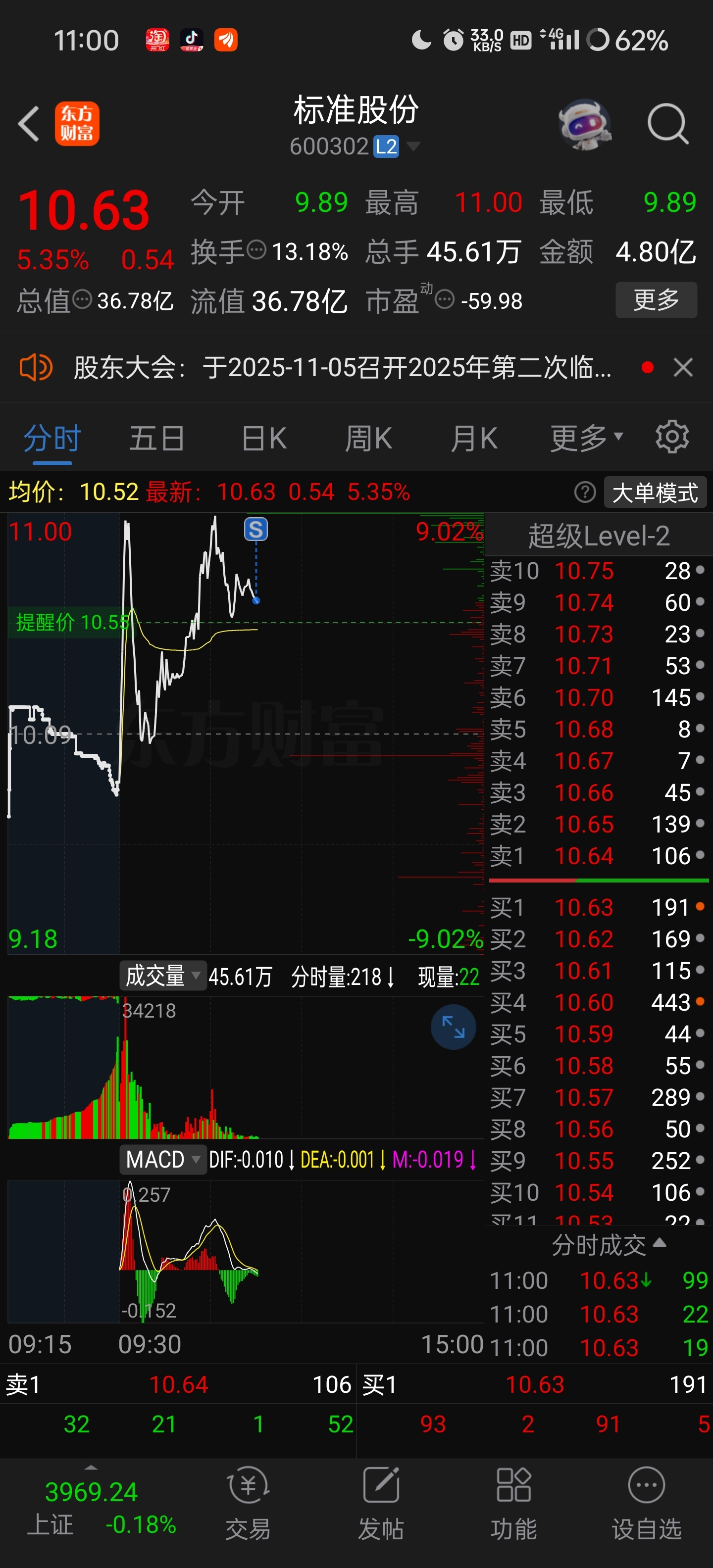 $标准股份(SH600302)$ 扛不住了,兄弟们,换手15左右相当好的换手率,可惜了,卖了就不接回来了,感觉卖飞了