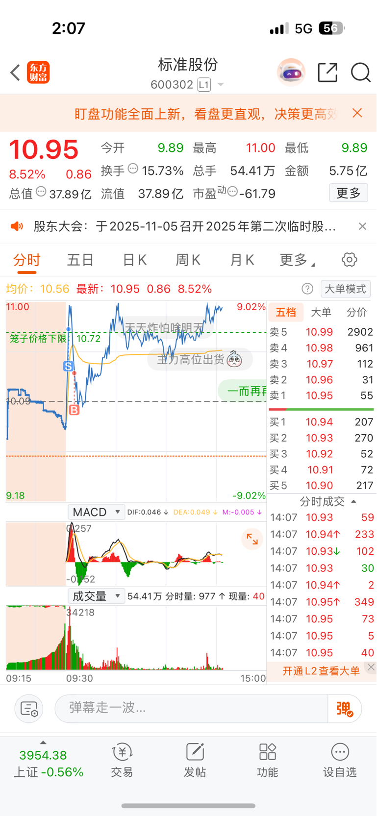 $标准股份(SH600302)$ 10.75卖,10.35接回来,成本T下来4毛钱,绿的时候不敢加仓,没想到又上去了