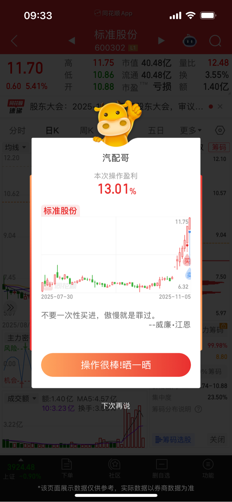 $标准股份(SH600302)$ 好像卖飞了祝里面兄弟发财