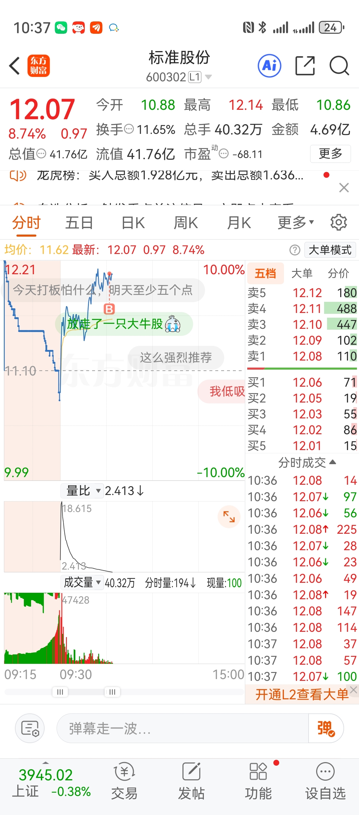 $标准股份(SH600302)$ 有本事把我放在山顶上吧