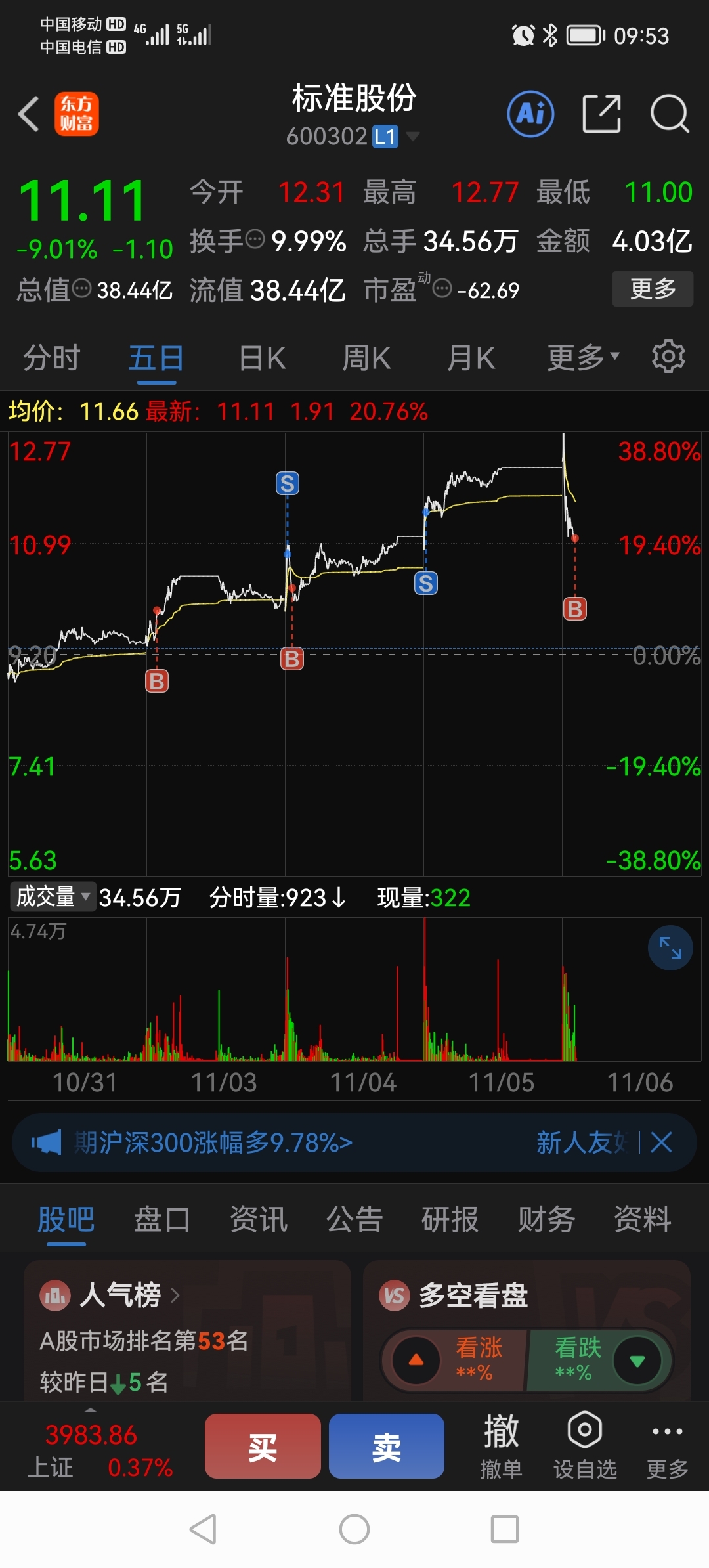 $标准股份(SH600302)$ 早上睡过头了我的个亲娘诶!问题不大,没有放巨量