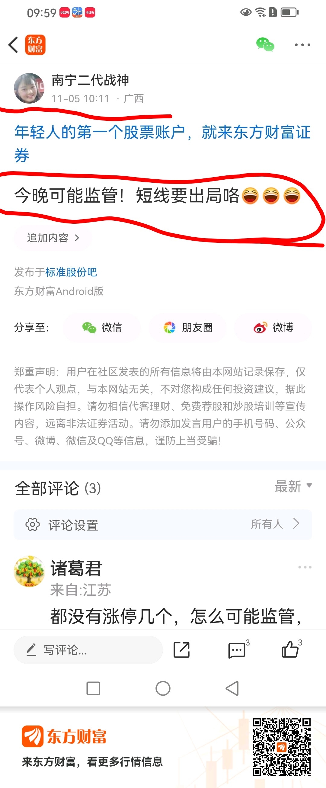 温馨提示: 1.根据《证券法》规定,禁止编造、传播虚假信息或者误导性信息,扰乱证券市场;2.用户在本社区发表的所有资料、言论等仅代表个人观点,与本网站立场无关,不对您构成任何投资建议。用户应基于自己的独立判断,自行决定证券投资并承担相应风险。《东方财富社区管理规定》