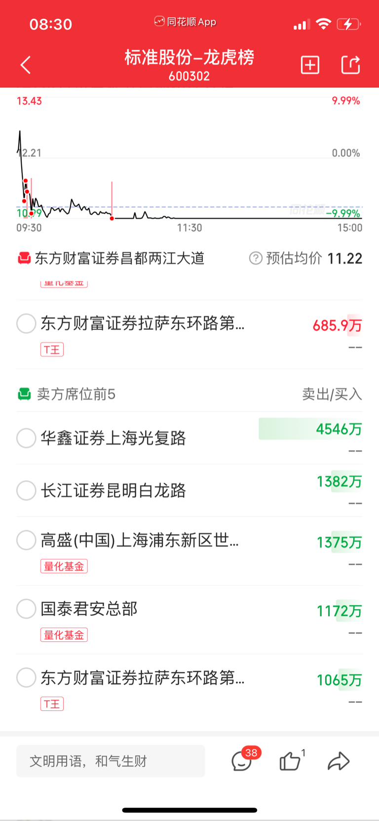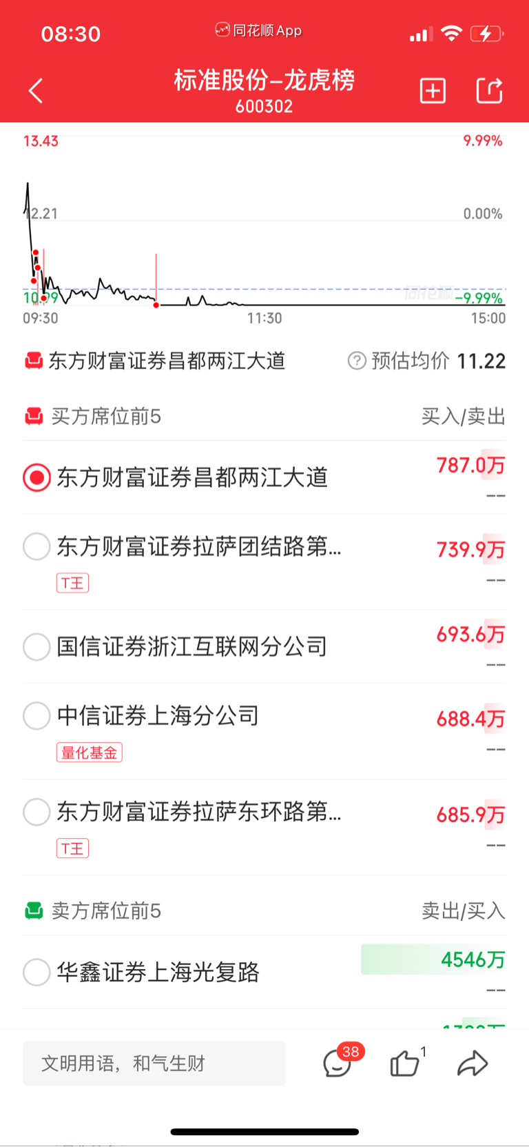 $标准股份(SH600302)$ 从跌停那天龙虎榜上分析,买方全是散户却还没有卖5散户卖的多,那么资金被谁买了,谁又在拿筹码,周五盯盘的应该能看到周五抛压也很大但是承接更强,我想有可能是重组方在拿2级市场筹码?
