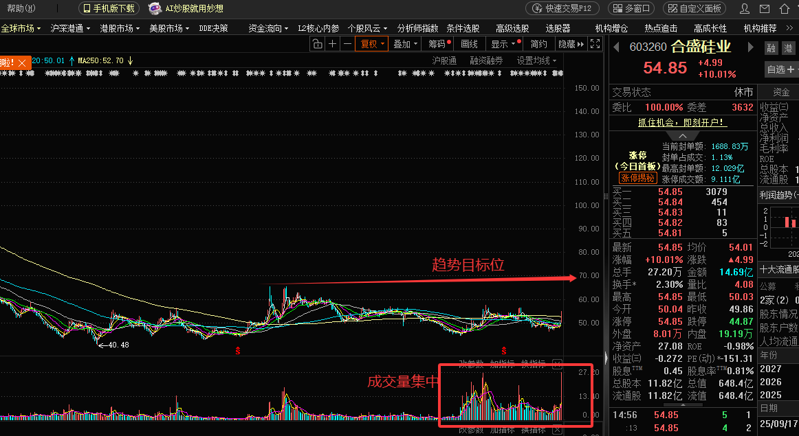 从行业来说有机硅不是小众产品,建筑密封、电子电器这些传统领域一直有稳定需求,而真正的增量来自新能源、高端制造这些新兴赛道。G家“双碳”Z策下,环保要求越来越严,行业集中度越来越高,龙头企业的定价权更强了。技术走势来看,周五涨停直接突破年线,趋势转折,经过几个月的震荡洗盘,大概率会有一波行情,但这种是趋势股,以均线低吸为主,观察5日线的机会。$合盛硅业(SH603260)$